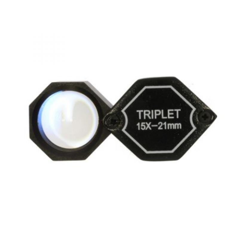 Deze triplet schuift u eenvoudig over de wijsvinger. Met de triplet kunt u de fijnste essentiele details van het te onderzoeken materiaal bestuderen. De behuizing is zeer degelijk, vervaardigd uit metaal. Klein en handig mee te nemen in de meegeleverde leren buidel.